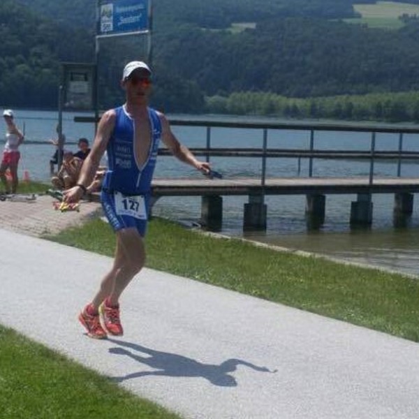 Jürgen Seiser war als dritter mit von der Partie. Ihm war die Sprint Distanz zu kurz - somit startete er bei der Mitteldistanz. Als Mitteldistanzstarter kam er in den Genuss, die verschärfte Radrunde nicht nur einmal sondern gleich 3 mal abfahren zu dürfen ;) Nicht einmal der Krampf im Oberschenkel nach dem Aufstieg beim Laufen konnte ihn aufhalten. So finishte er in einer tollen Zeit von 5:04:11 und erreichte den 29. Gesamtplatz und den 7. Platz in der Klasse M35!